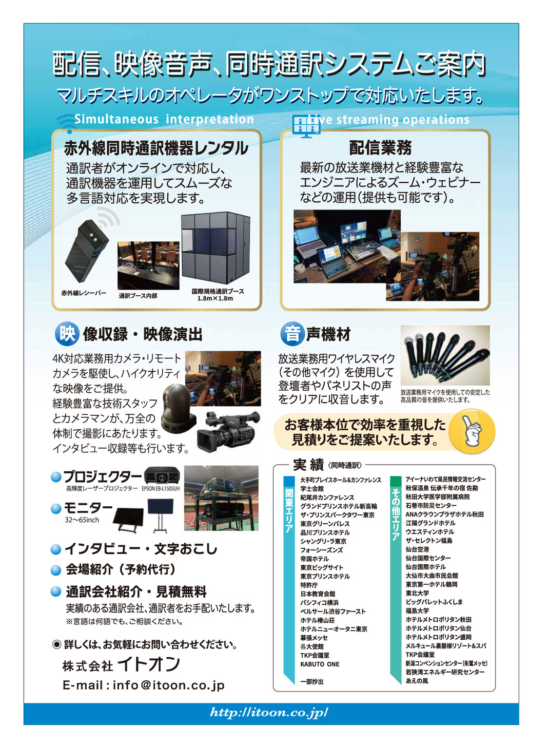 実績豊富な技術者と赤外線方式の同時通訳機器による安定した高音質のシステムを提供いたします。